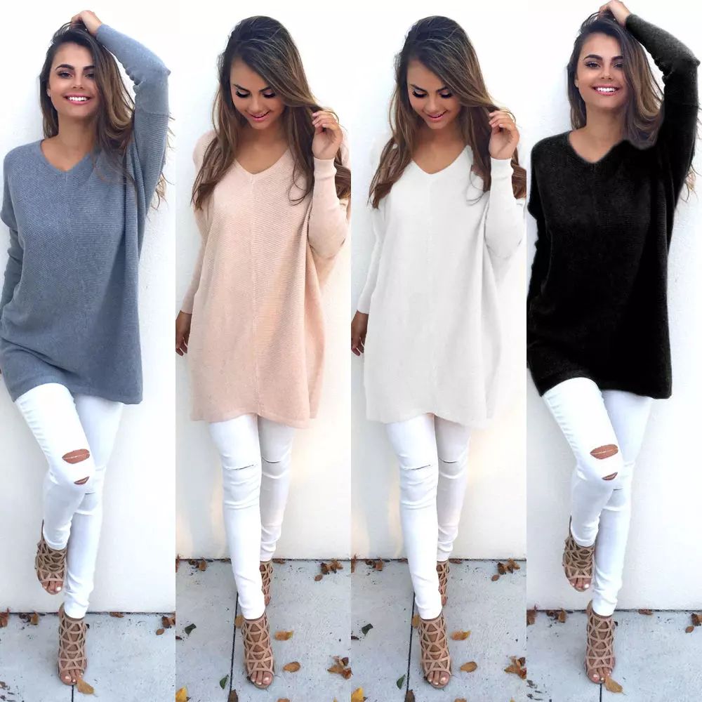 Compre Nuevas Para Mujer Para Mujer Con Cuello En V Suéteres Calientes De Punto Ocasionales Jerseys Largos Suéter De Manga Larga Jumper Tops Outwear A 21,2 € Del Samlla | Es.Dhgate.Com