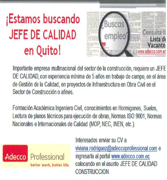 UCE Facultad de Ingeniería y Ciencias Aplicadas: Bolsa de Empleo, Ing. Civil, Jefe de Calidad
