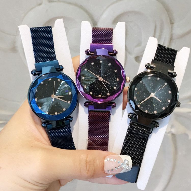 2019 Imán Hebilla Púrpura Lujo Mujeres Reloj Moda Acero Famoso Diseño Relojes De Marca Mujer Vestido De Dama Reloj Con Cielo Estrellado Dial De 17,56 € | DHgate Spain \u0026 Mexico