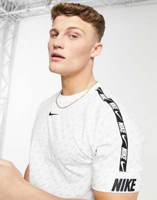Nike Repeat Pack all over logo print taping t-shirt in white | ASOS